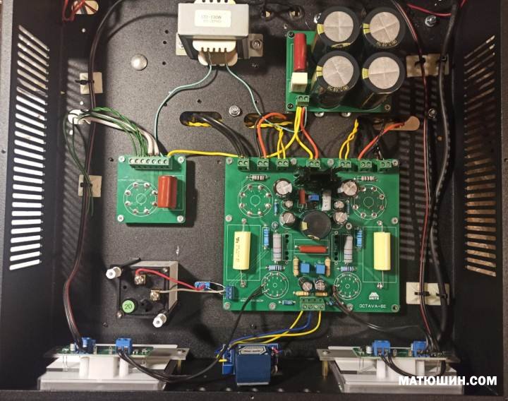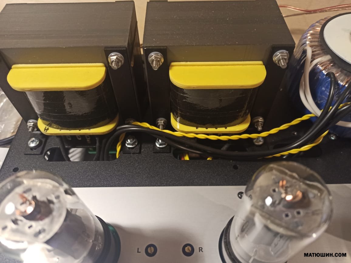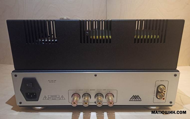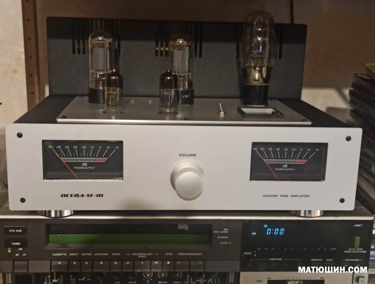 Выходные М6 165Вт .г.м. Кенотронное питание. 6П3С и другие этого типа до КТ88.На раскачке 6Э6П. 8Ом ;4Вт вых.мощность.Вес порядка 17кг. 38х36х22см
